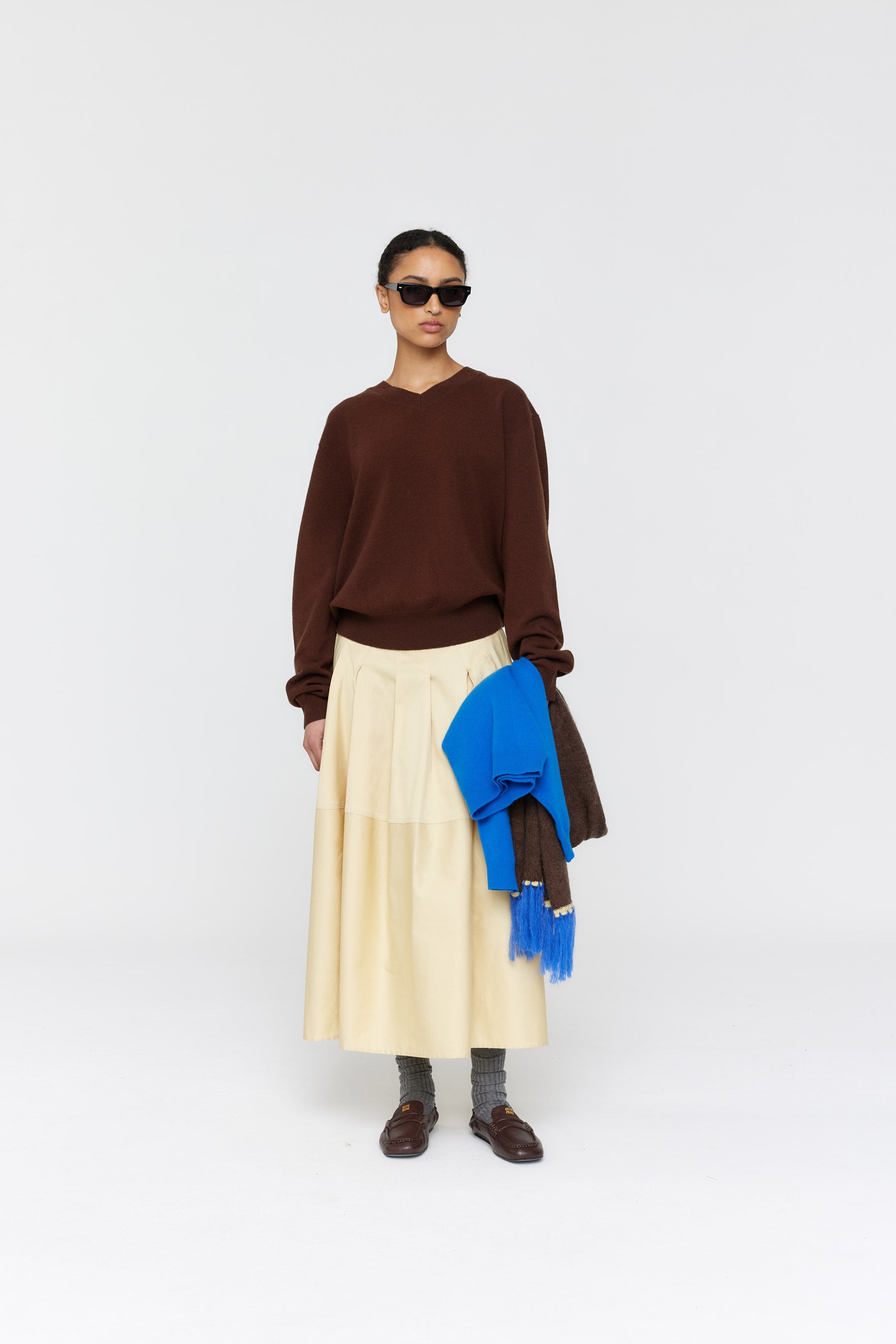 Expertly crafted from super soft wool, the Amina Jumper offers a cozy yet stylish v neck design. With a slightly cropped length and ribbed cuffs and hem, this sweater combines comfort and fashion seamlessly. Perfect for any occasion, stay warm and fashionable in the Amina Jumper.