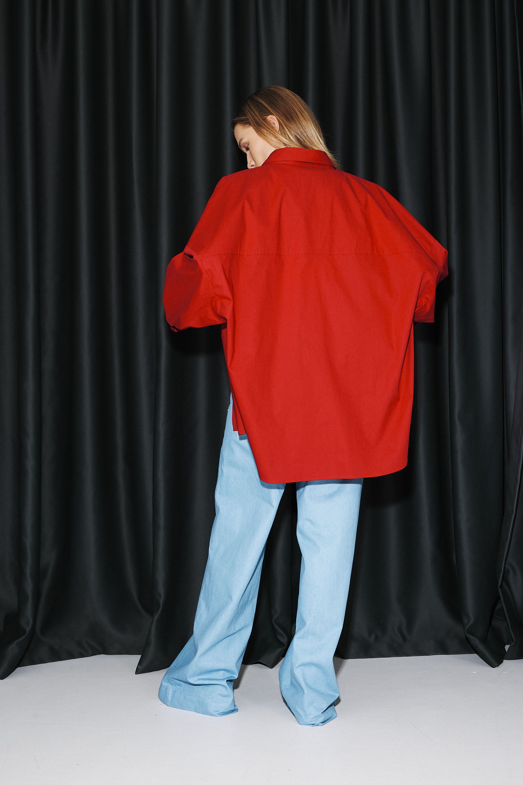 Raspberry coloured, long sleeved tailored shirt in a lightweight washed cotton. Features large patch pockets on the front, and shell buttons down the centre front. The shirt has a back yoke, tailored collar and cuffs. Relaxed fit.