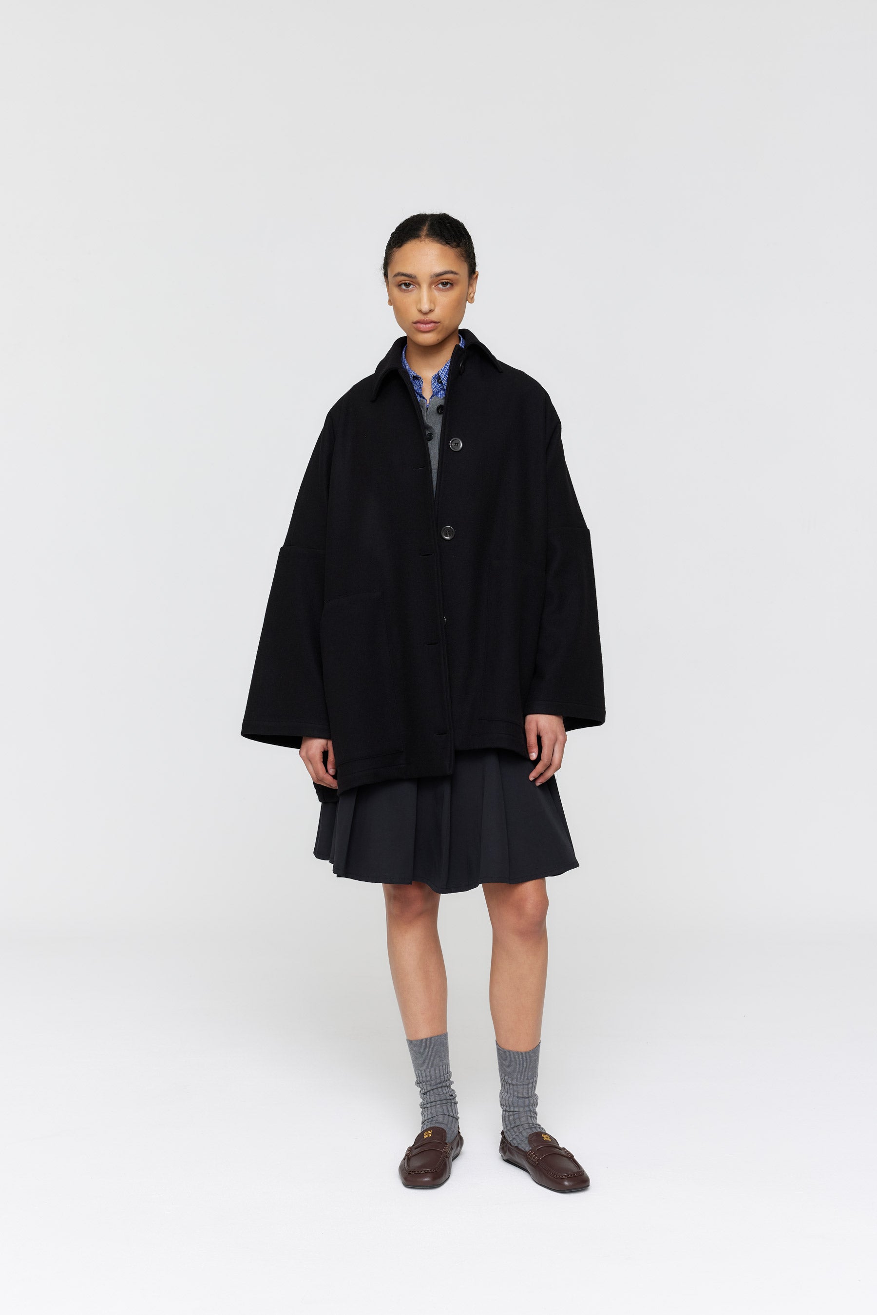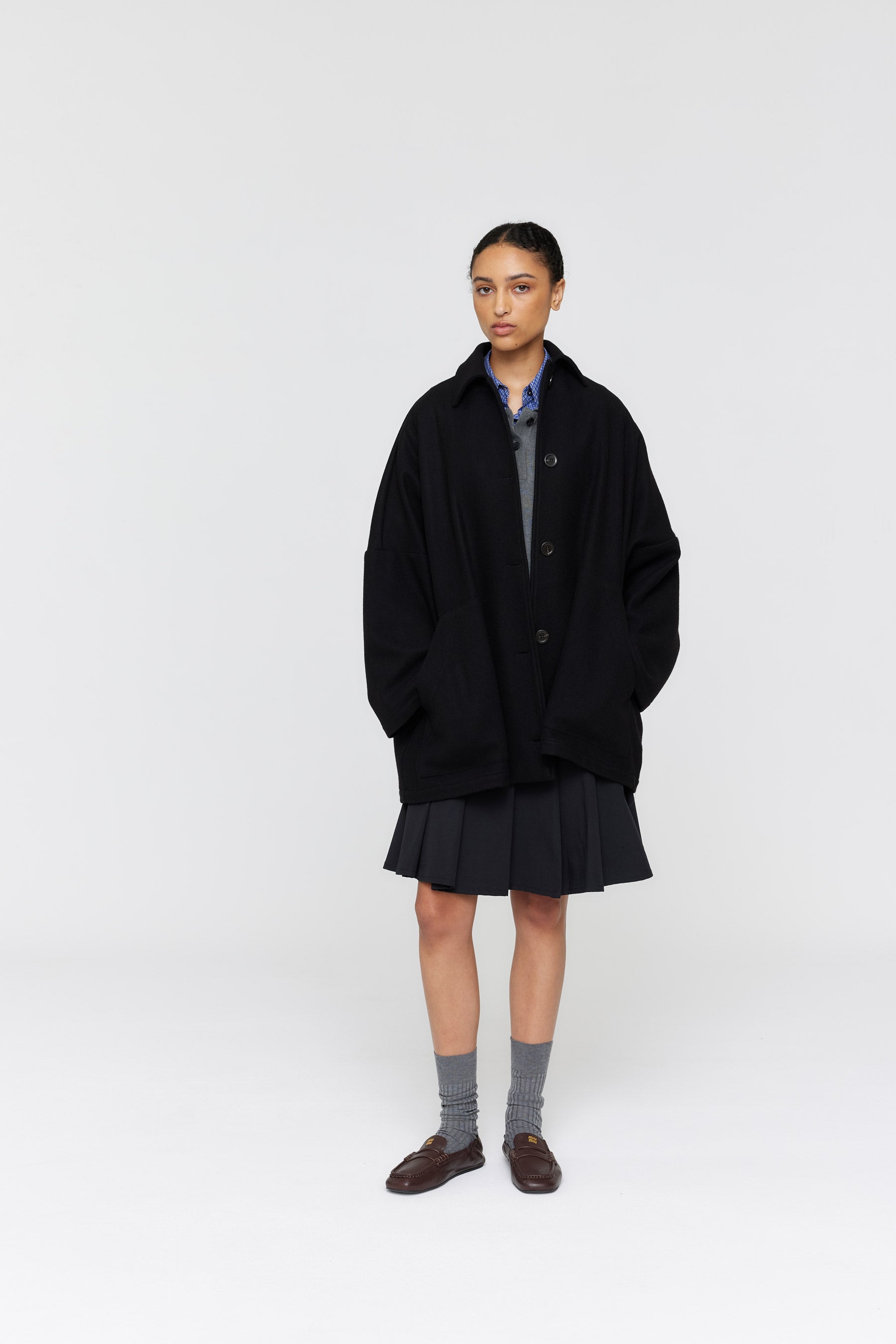The Jesper Coat features a generously oversized silhouette with dropped shoulders and wide sleeves, creating an effortlessly relaxed aesthetic. Detailed with functional buttons and large patch pockets, this piece is designed to layer beautifully over coordinated separates. Crafted from premium Japanese wool blend (90% wool, 10% nylon) and made in New Zealand, it combines quality construction with contemporary style for the season ahead.