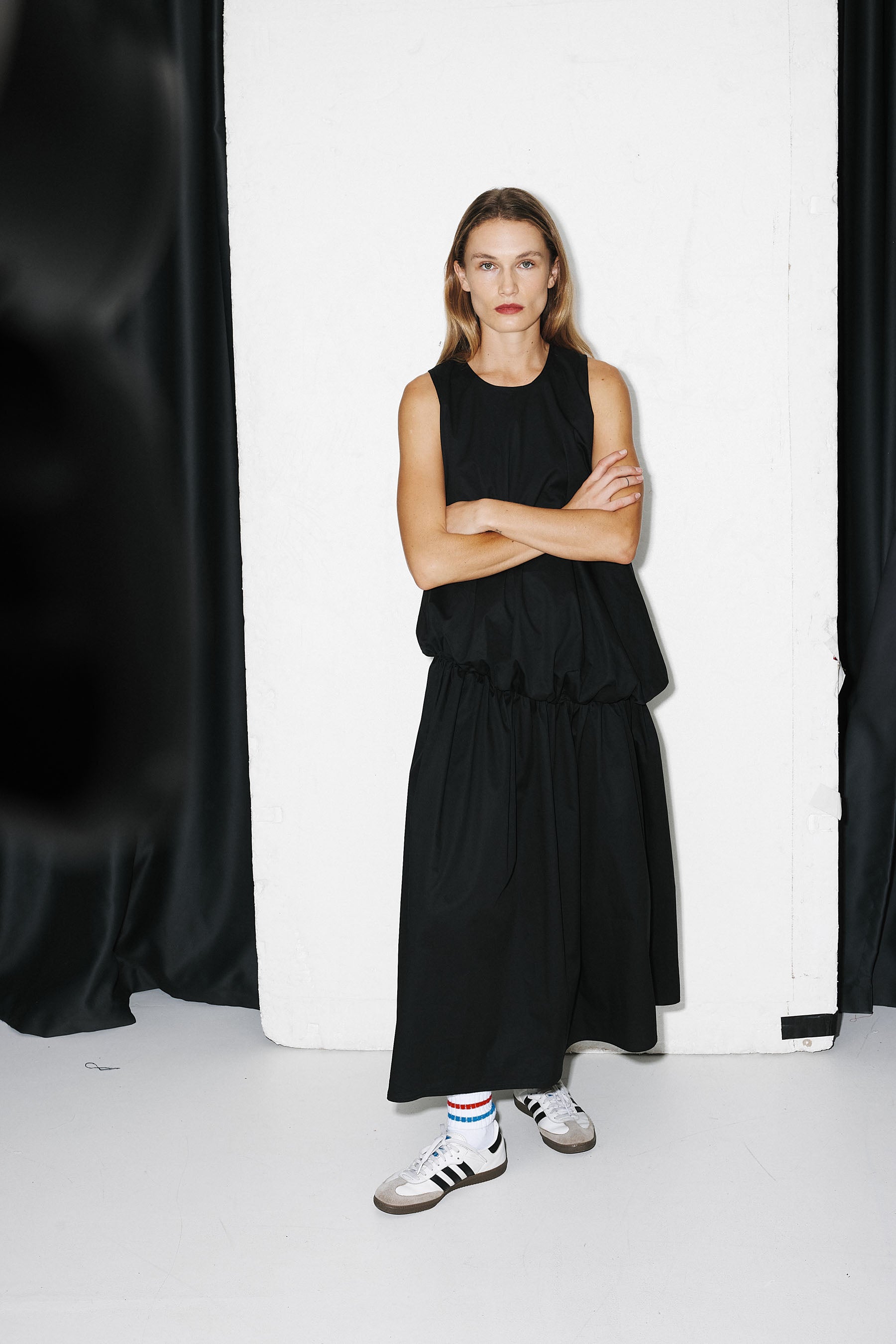 Introducing the Daley Dress, a contemporary and effortlessly chic garment that embodies the Ricochet aesthetic. This dress features an asymmetrical elasticised waistband, creating a unique and dynamic silhouette. The full skirt comes complete with a convenient pocket, combining style and functionality. The bubble hem asymmetrical top enhances the modern appeal. With its sleeveless design and classic crew neckline, this dress strikes the perfect balance between casual and refined. The relaxed silhouette ensures comfort without compromising on style. Elevate your wardrobe with the Daley Dress, a true expression of Ricochet’s modern minimalism and innovative design.