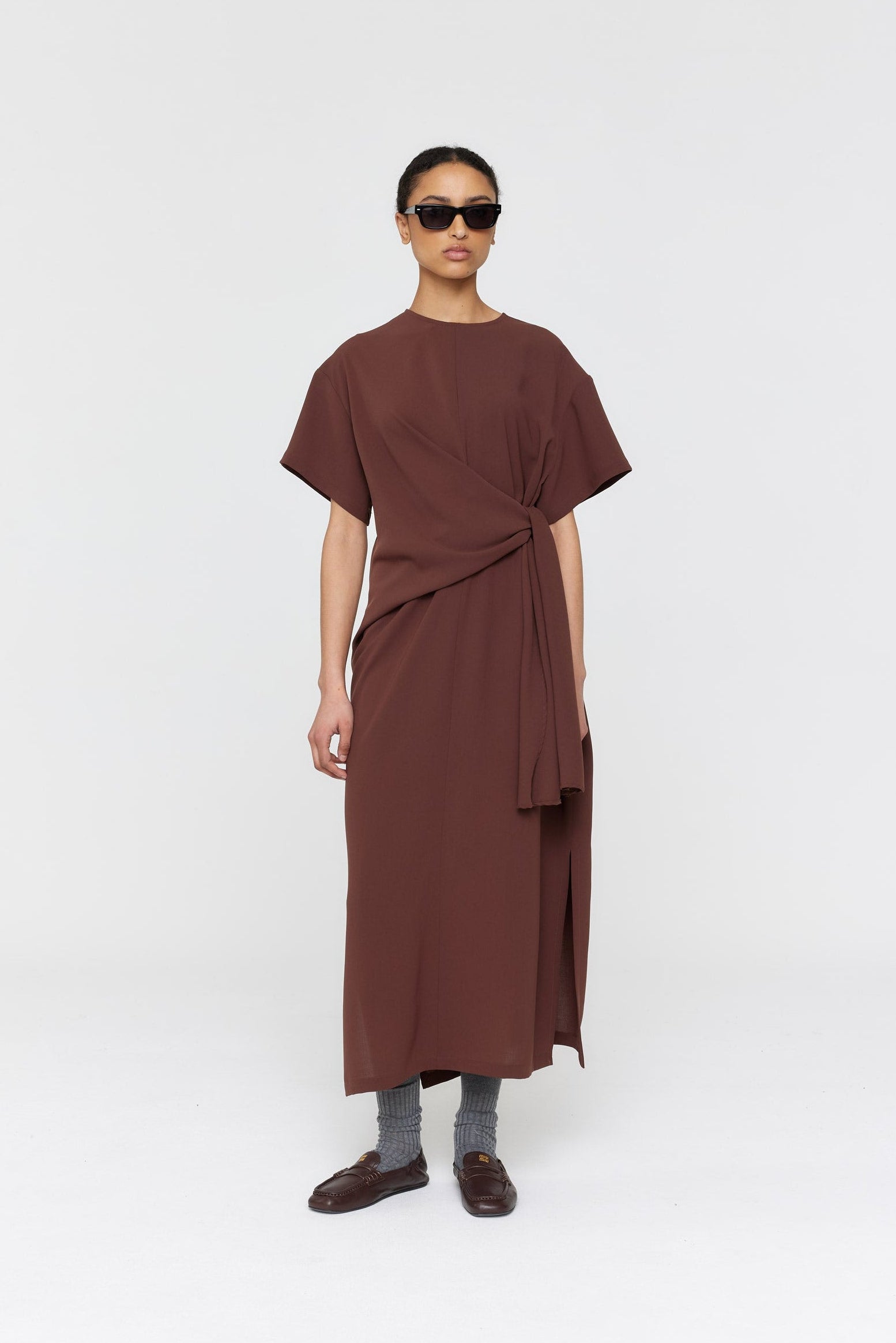 Crafted with precision using luxurious heavy Japanese Crepe, the Diana Dress exudes effortless elegance. Its versatile design includes a round neck, longer length, and waist ties for a relaxed yet refined silhouette. Perfect for any occasion, dress it up or down with a simple ties at the side.