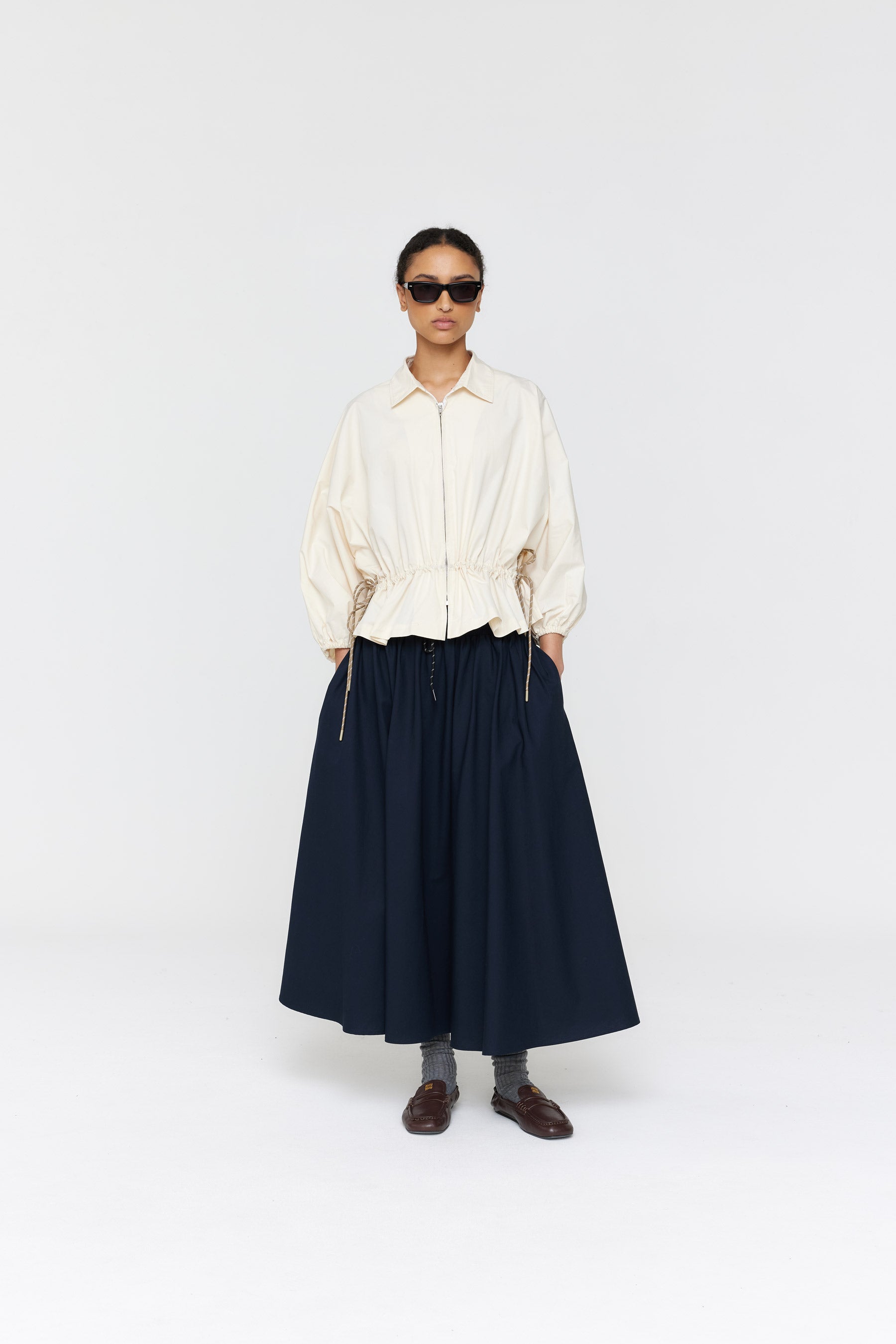 The Korda Shrit is a perfect combination of style and comfort. Made with high-quality cotton material, it offers a luxurious feel. Its fit and flare silhouette, front zipper closure, and elasticated sleeve make it both stylish and comfortable. The waist channel with sporty ties and knee length give it a summery edge.