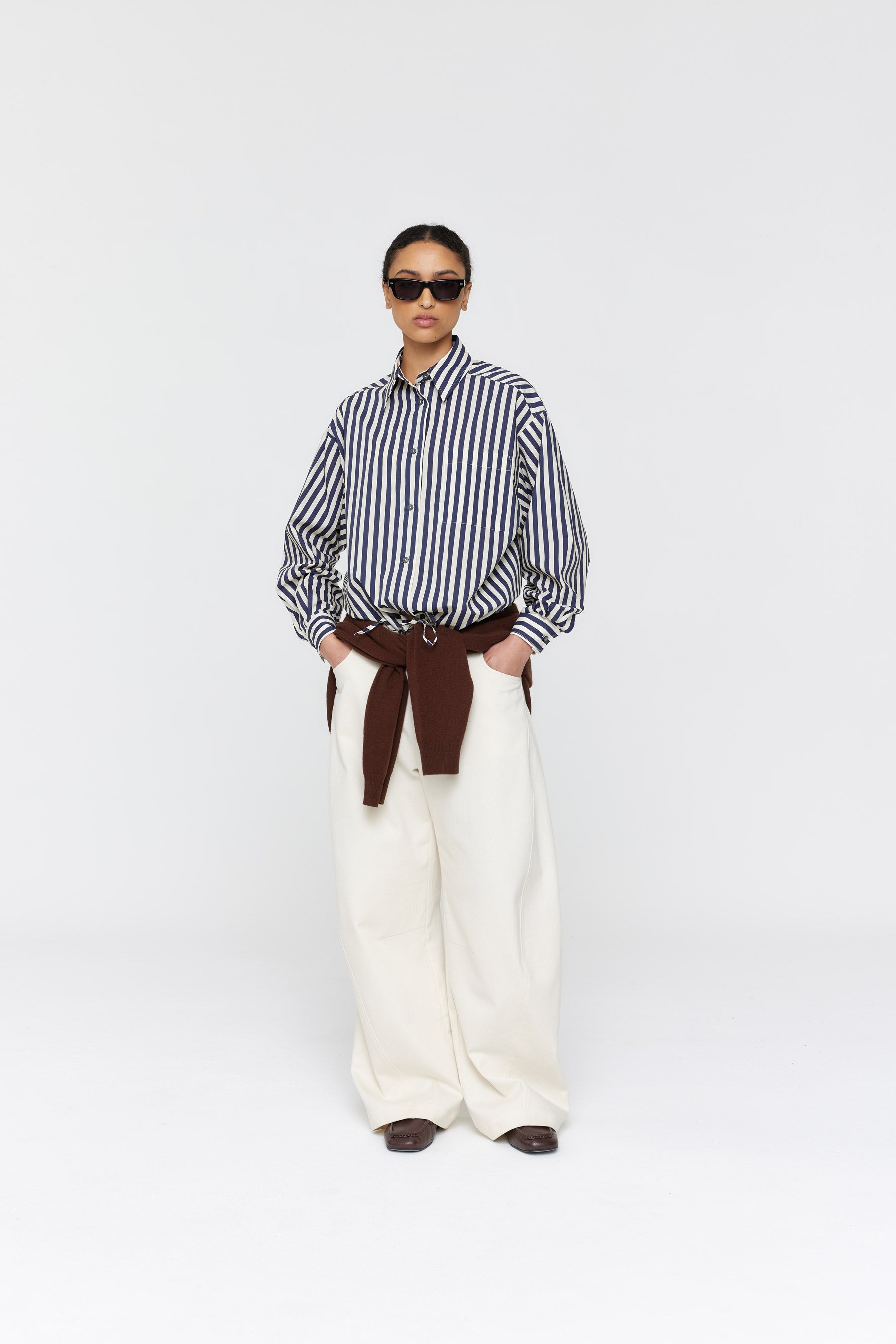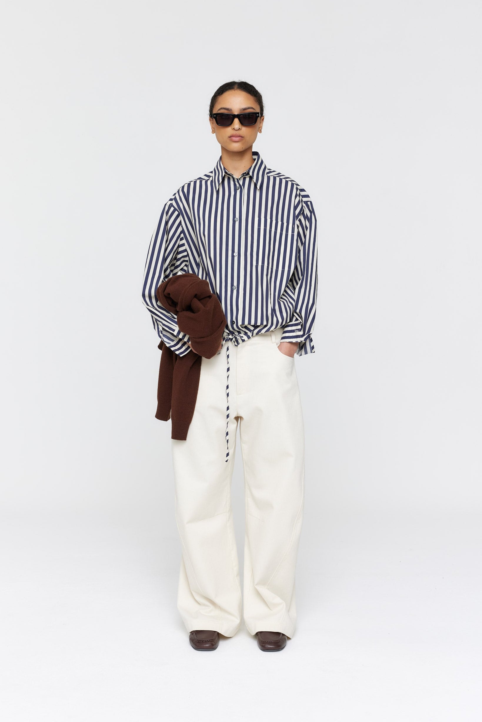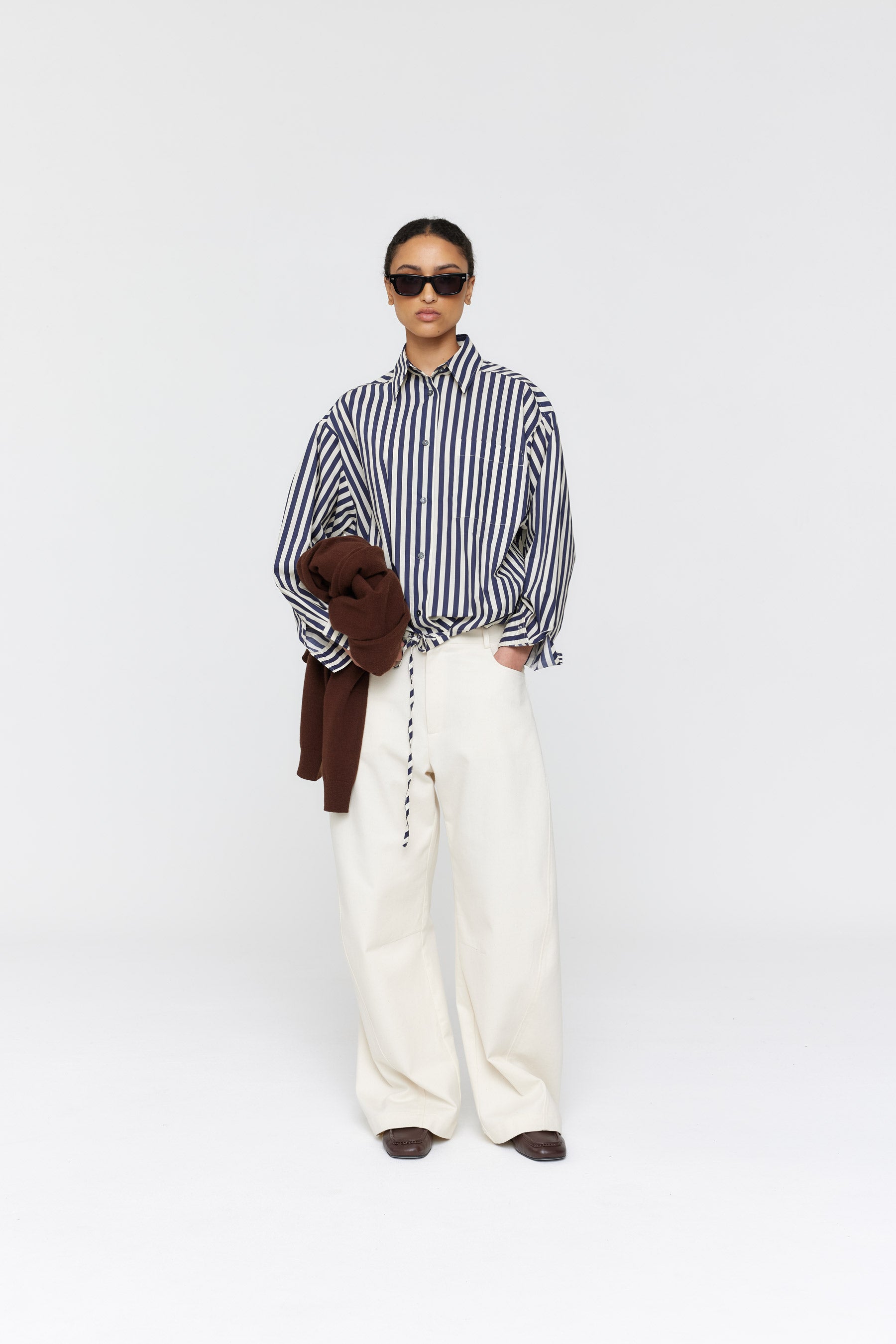 Arthur Shirt AW26 Ink + Clotted Cream Stripe