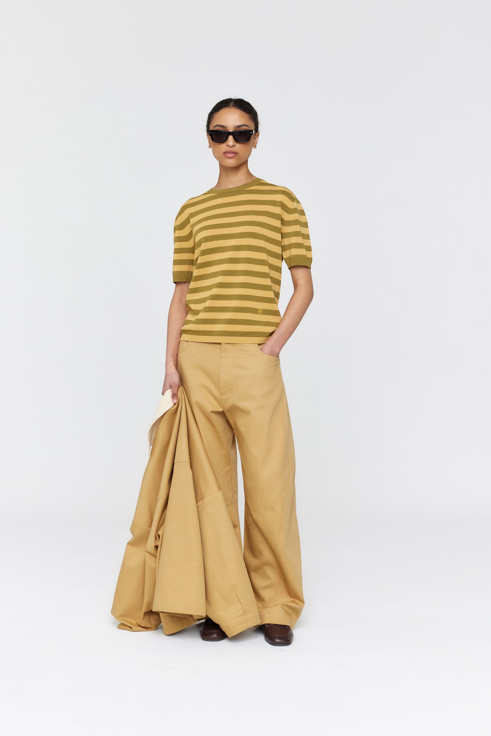Expertly crafted with high-quality viscose nylon material, the Francisco Knit Tee SS25 offers exceptional comfort and design. Its crew-neck and horizontal stripe design add a stylish touch to this must-have knitted tee. Elevate your wardrobe with this expertly crafted piece.
