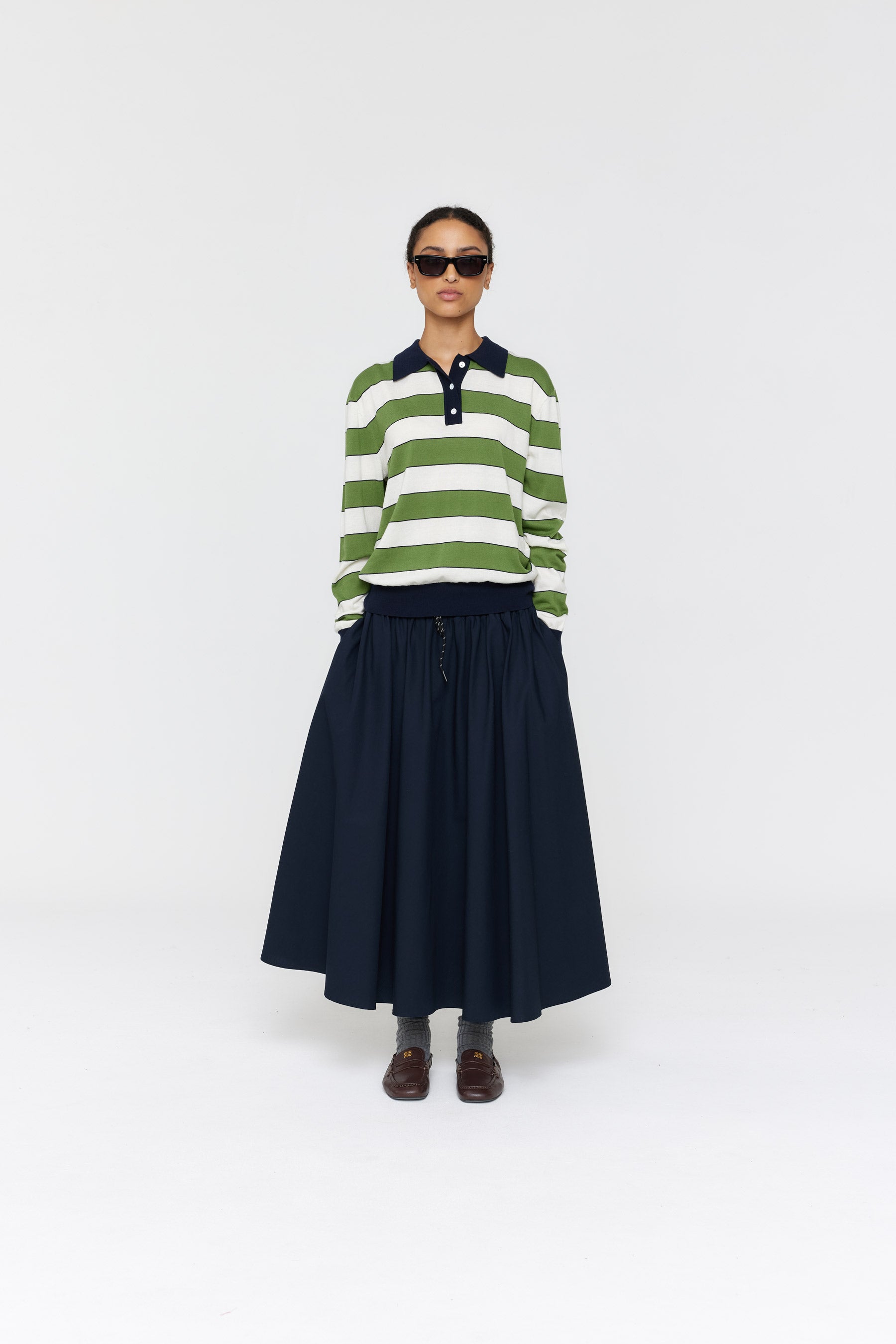 Noe Polo AW26 Green + Ink + White Stripe