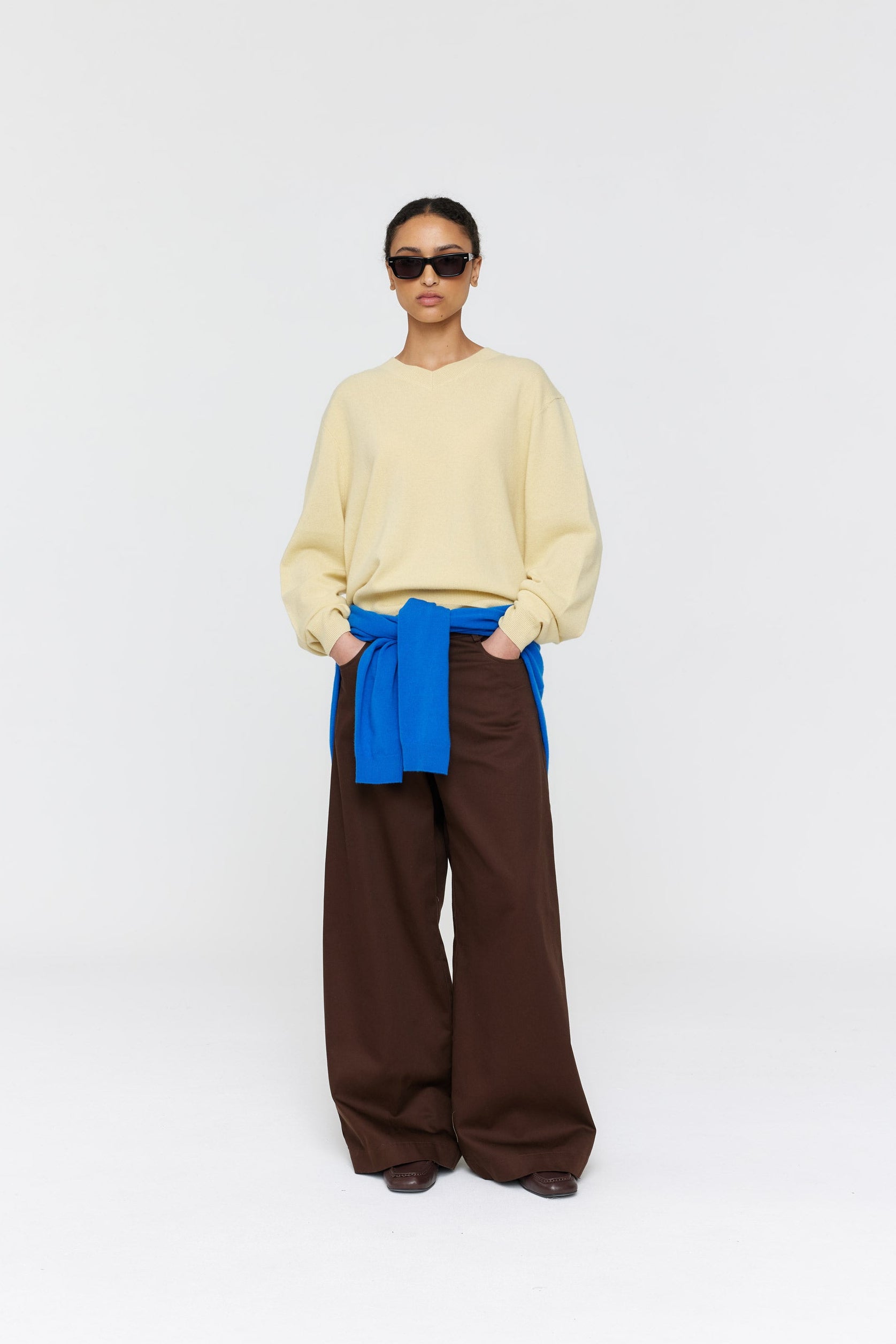 Introducing the Haynes Jean, a modern and bold piece that captures the essence of contemporary style. Crafted from brown coloured cotton twill, these jeans offer a wide leg, with two main front pockets and two back patch pockets, these jeans combine style and functionality.