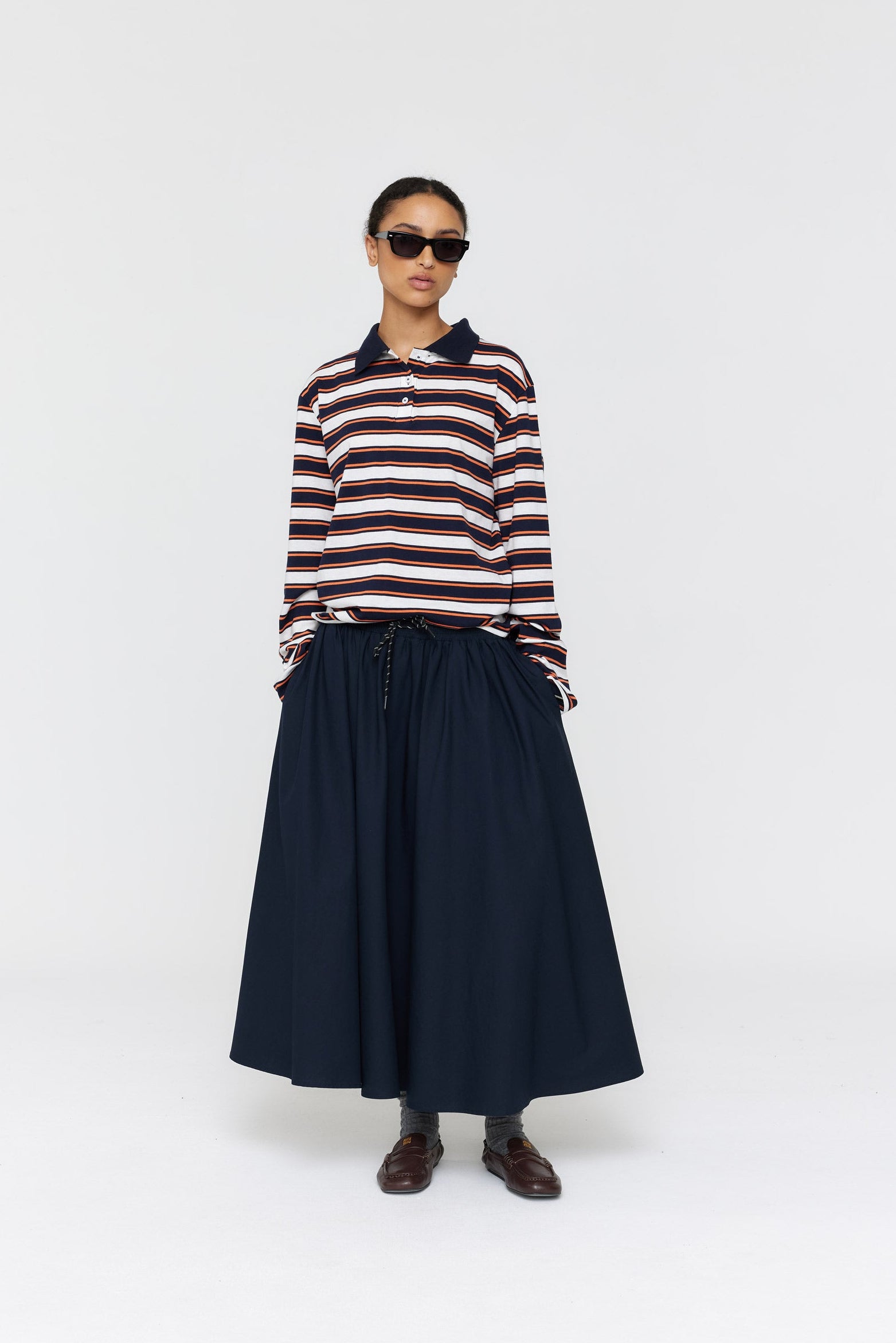 The Alonso Polo merges athletic heritage with contemporary design through its cotton jersey construction and horizontal stripe detailing. Long sleeves provide extended coverage, complemented by a straight hem that maintains clean proportions. The contrast collar frames the neckline with understated sophistication. Crafted for those seeking a versatile piece that transitions seamlessly from casual wear to layered styling, this polo delivers durability and refined aesthetics in equal measure.