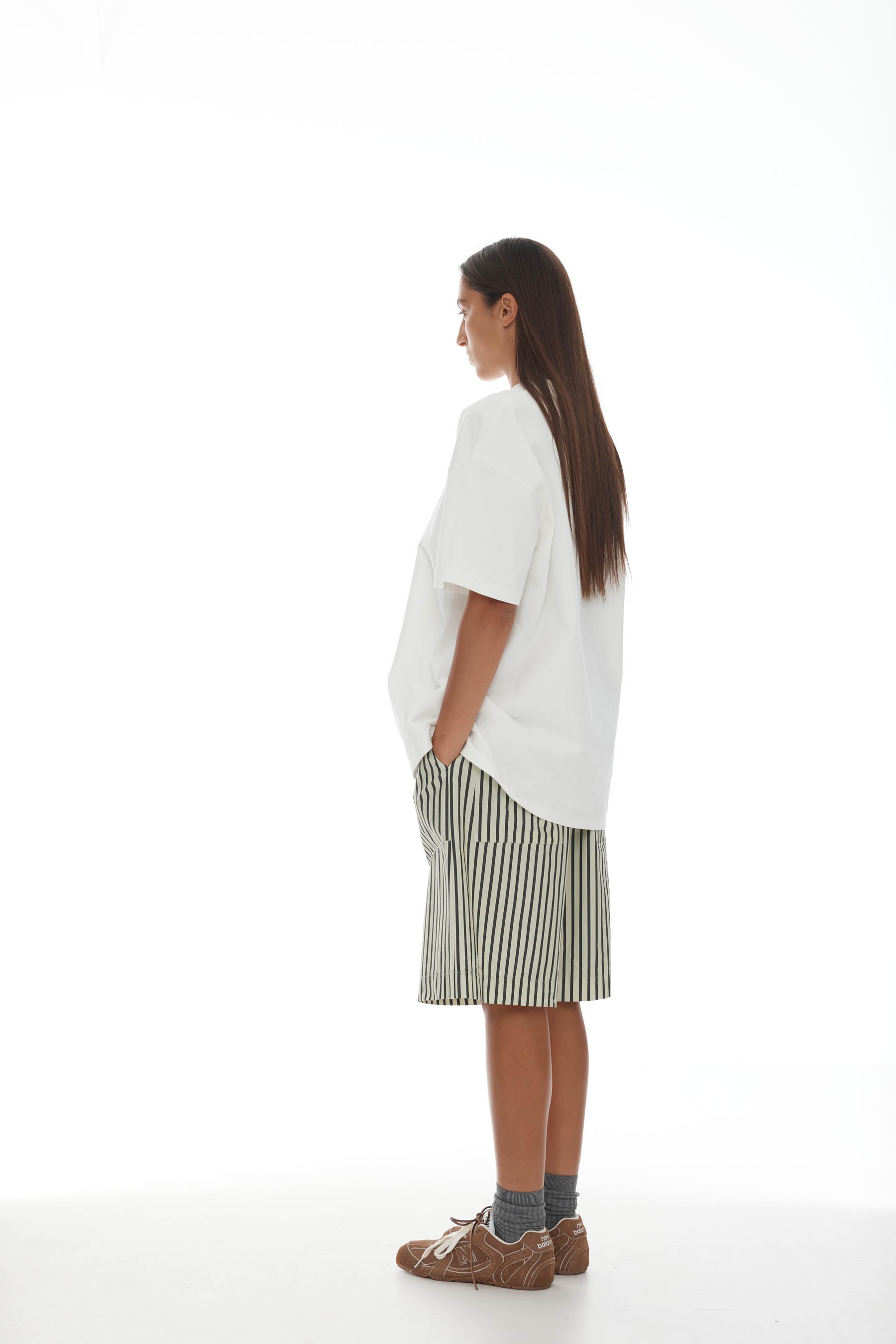 Linley Short SS25 Sage + Dark Khaki Stripe